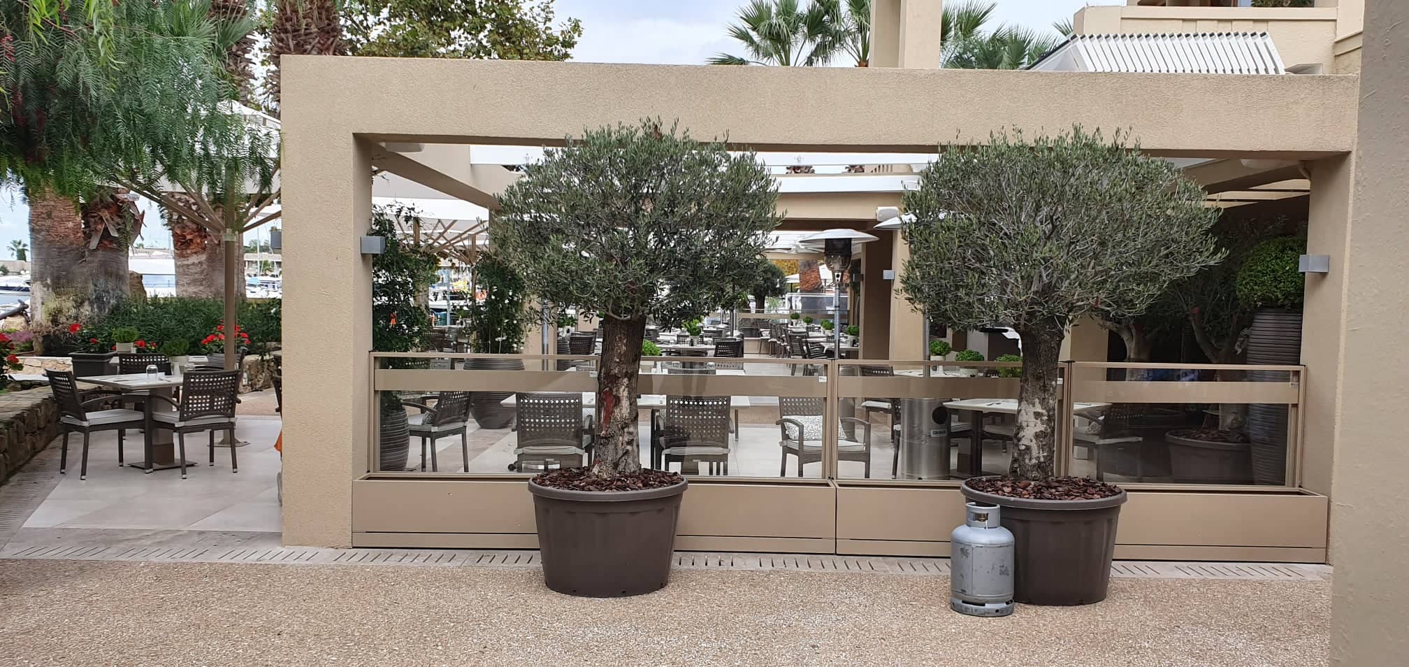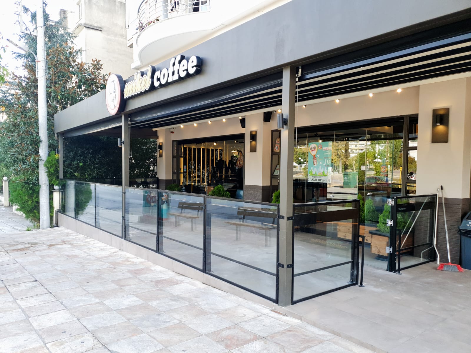 One of the advantages of outdoor windbreaks is that they cannot be bolted to the ground where this is prohibited by law. In this case, the system is placed in a planter, giving the illusion of an extension for greater aesthetics. If there are empty spaces between the windbreaks, glass doors can be installed, made of safety glass with stainless steel hinges. This creates a unified look that can only enhance a company’s image.