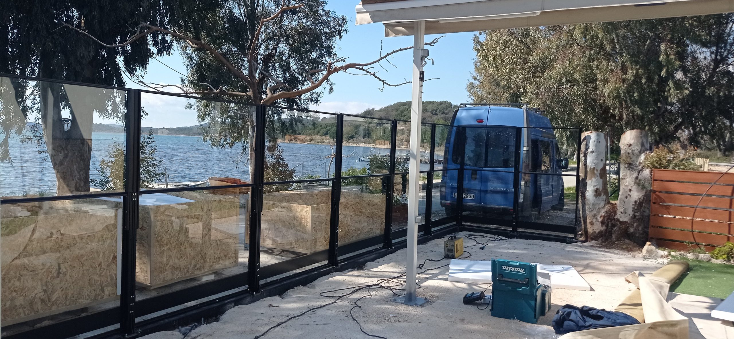 They can be described as glass windscreens because they are made of 3X3 laminated glass. This glass combines a high level of safety and protection, even against strong winds, with the elegance and warmth of your outdoor space.